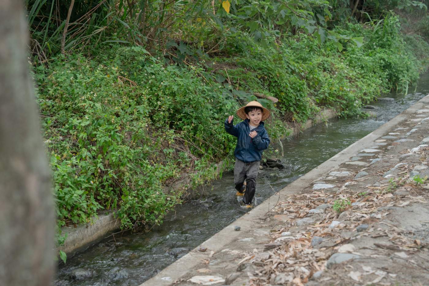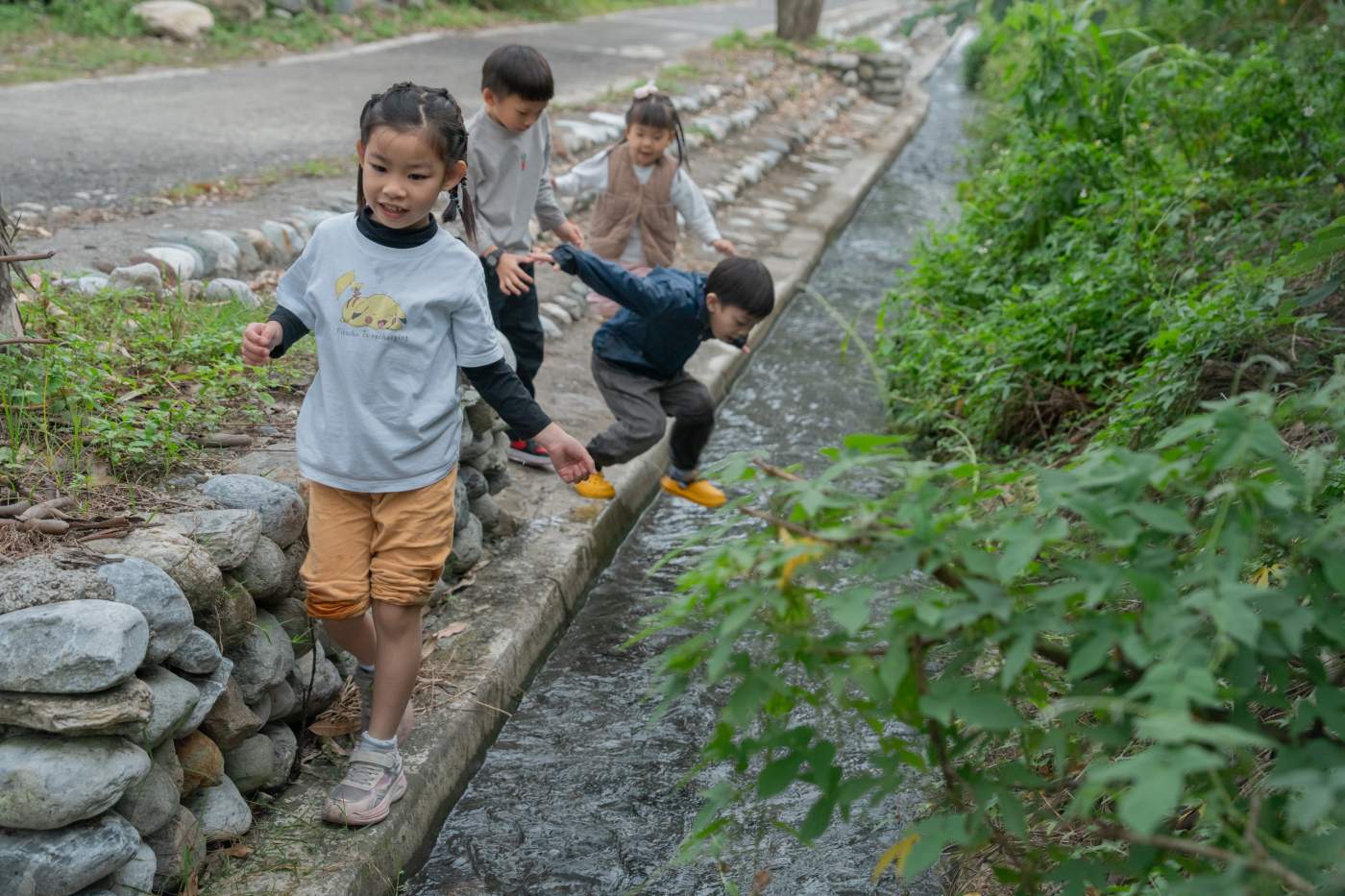 在安全區域體驗「踩水」,走進光華排水三期改造後的親水綠帶。
