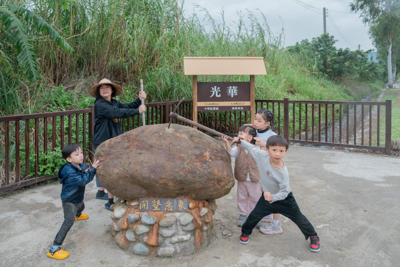 在紀念碑前拍照,聽聽光華如何被一鏟一鏟開墾成今天的模樣。