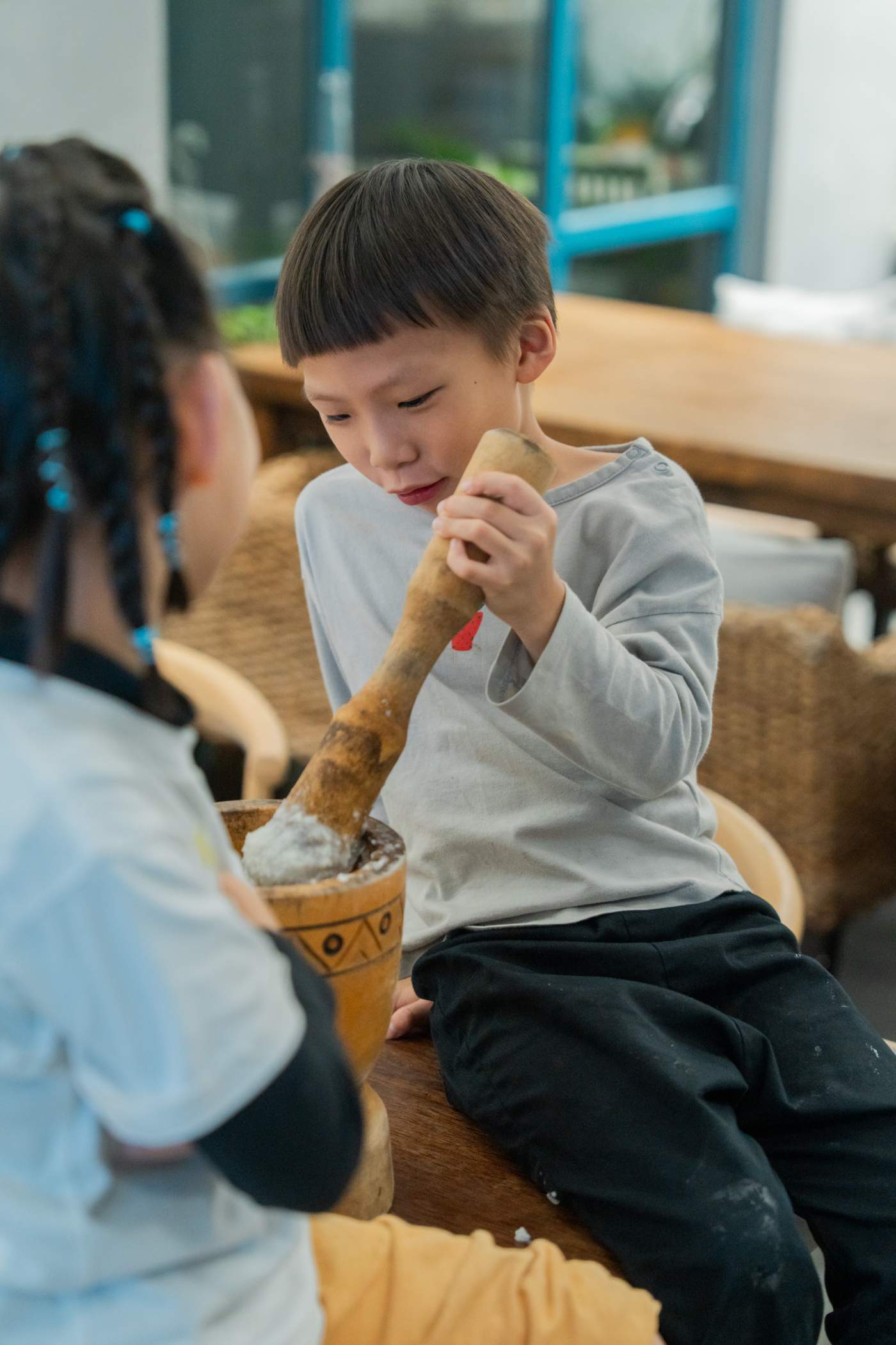 大家輪流一起搗,體驗在原住民與吉野村都存在的「集體勞動」節奏。