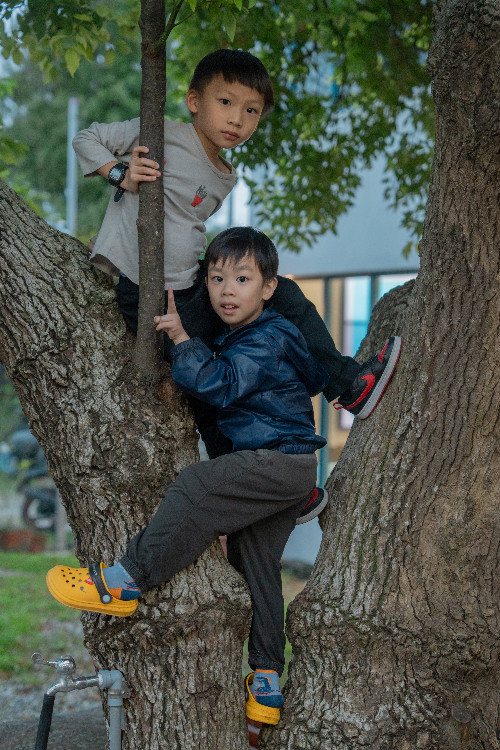 在爬樹冒險與觸碰樹木、草地的過程探索自我